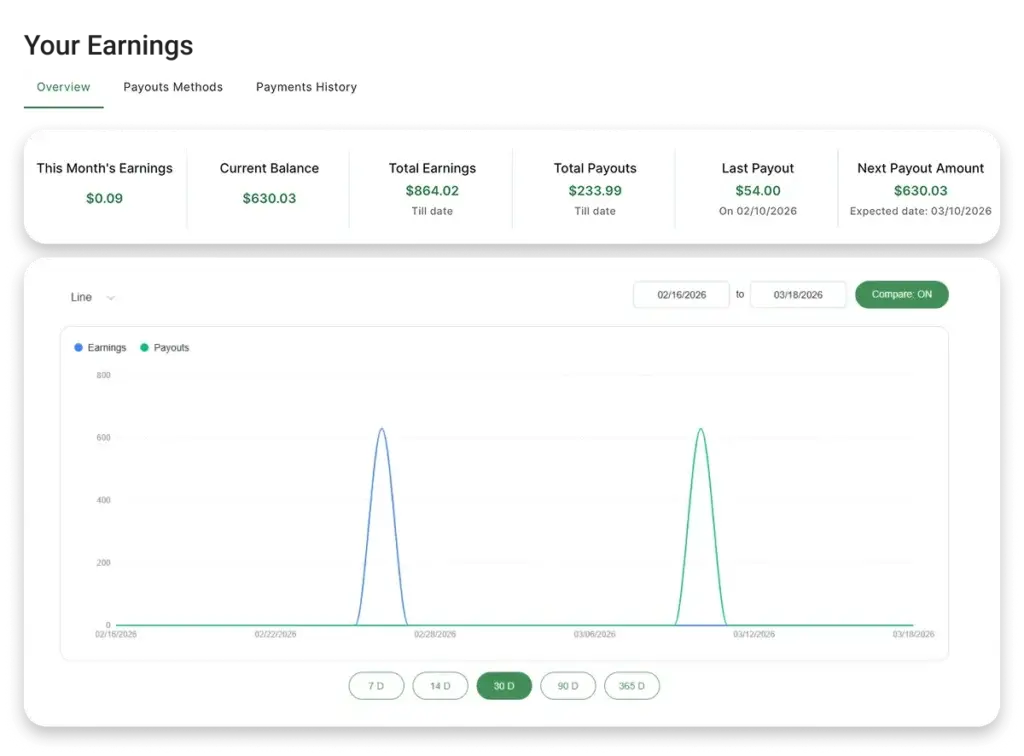 Pro Tip: View your ‘Earnings Summary’ in the dashboard to see your gross earnings, PaidLine fees, and net payouts in one simple view.